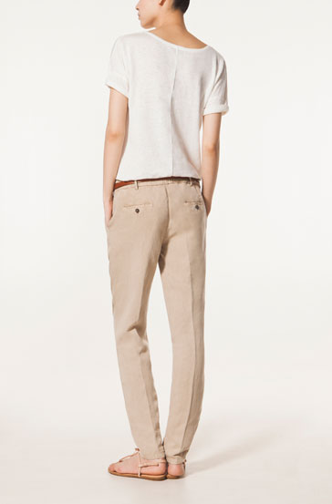 Ando à procura de umas calças "chino-carotte", cor beje. Ao tempo. Ainda fiz uma tentativa nos saldos da zara de há 2 anos, mas comprei um tamanho (ou 2 ) acima e apesar de ser fã do conceito, o look torna-se demasiado "casual"..